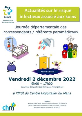 La prochaine journée départementale des correspondants / référents paramédicaux aura lieu le vendredi 2 décembre 2022, de 9h à 17h, à l'IFSI du Centre Hospitalier du Mans.