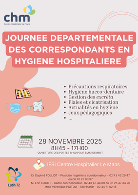 La prochaine journée départementale des correspondants / référents paramédicaux aura lieu le vendredi 28 novembre 2025, de 08h45 à 17h, à l'IFSI du Centre Hospitalier du Mans.
